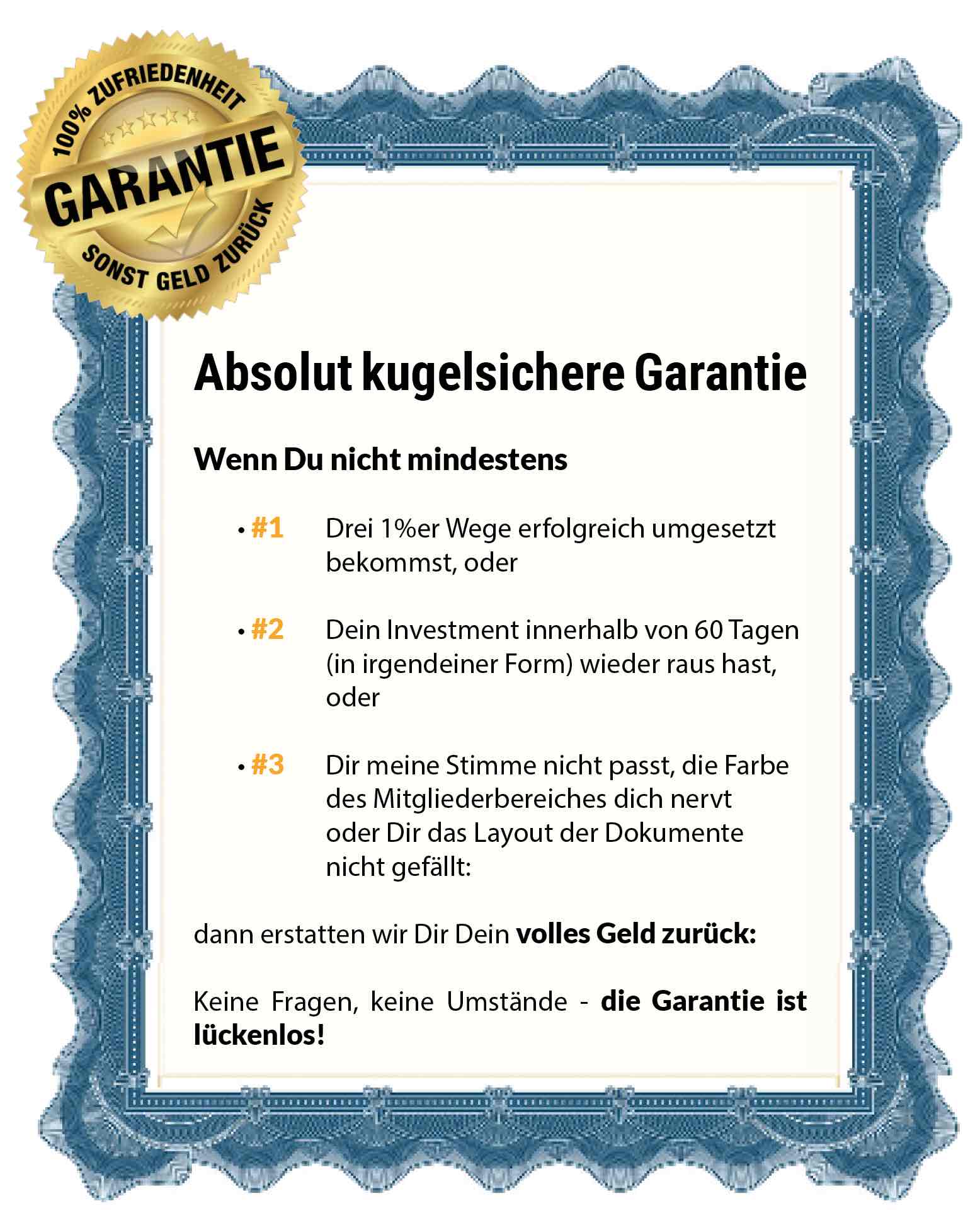 Dann erstatten wir Dir Dein volles Geld zurück: Keine Fragen, keine Umstände - die Garantie ist lückenlos und für volle 60 Tage gültig!